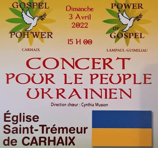 Concert en soutien au peuple ukrainien, dimanche 3 avril à l'église Saint-Trémeur, de Carhaix.