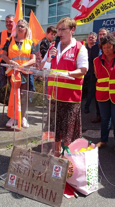 Autre personne à prendre la parole, Sophie Levenez, secrétaire adjointe de la CFDT du CHRU de Brest-Carhaix.