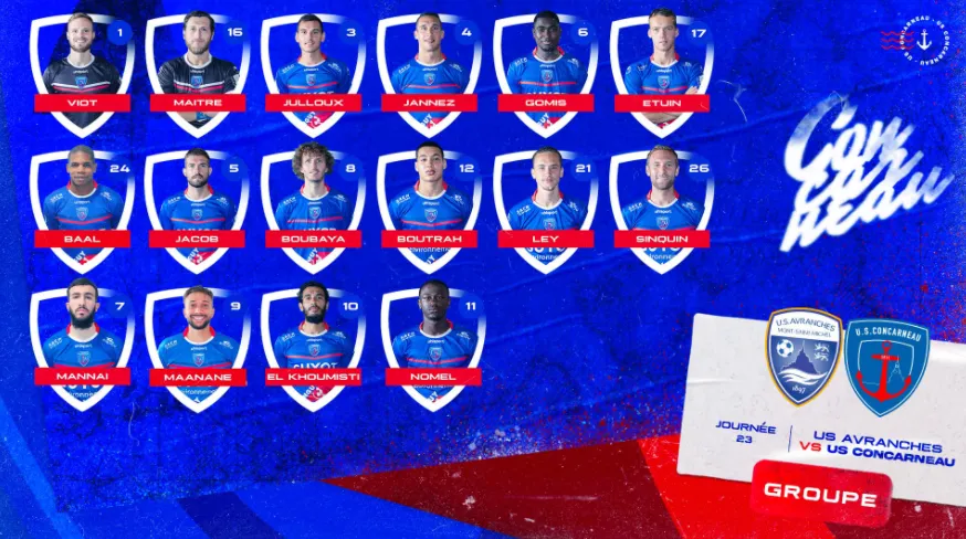 23e journée de National ce soir, et le déplacement de l’US Concarneau sur la pelouse d’Avranches. Malgré leur statut de leader du championnat, méfiance pour les Thoniers, puisqu'il faut rappeler qu'Avranches s‘était imposé au stade Guy Piriou au match aller (1-3), et sont allés prendre 1 point face à Laval, le dauphin de Concarneau, la semaine dernière.