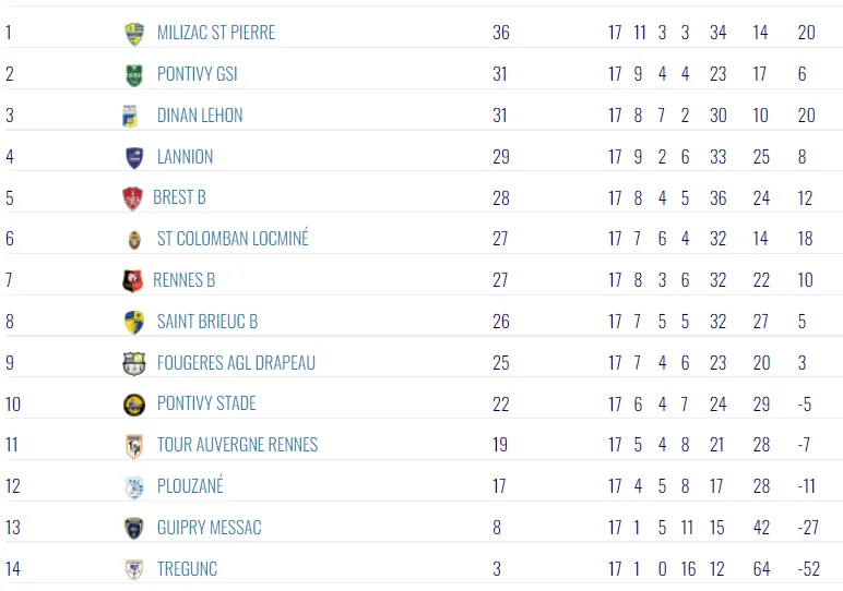 La GSI Pontivy qui retrouve donc le podium après cette 17e journée, marquée par la victoire du leader, Milisac, sur la pelouse de Trégunc, lanterne rouge (2-1).
