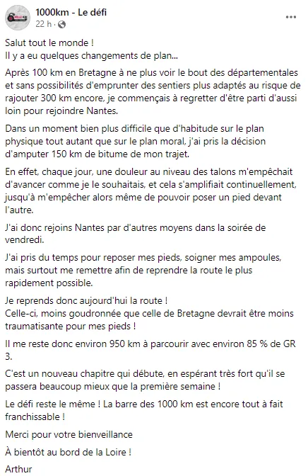 Vous pouvez visiter la page Facebook du défi d'Arthur, et le soutenir.